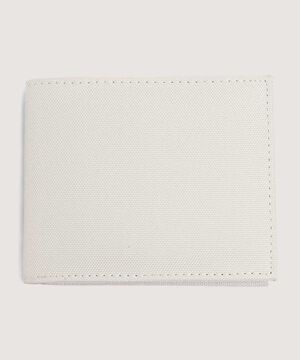 - Billetera para hombre en lona, textura acanalada, bolsillos internos funcionales para documentos, tarjetas y dinero.