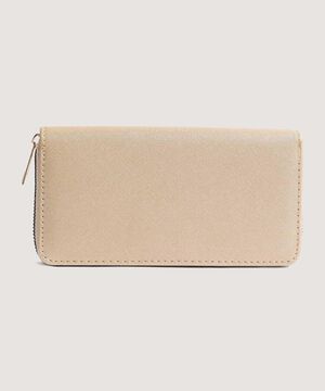 - Billetera para mujer con un efecto texturizado, forma rectangular, cierre metálico, bolsillos internos funcionales.