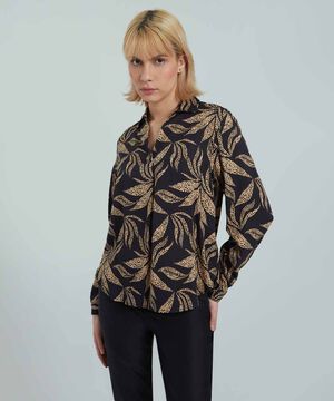 - Blusa manga larga para mujer con estampado de hojas que se componen de puntos, cuello camisero con escote en v, botones en las mangas para ajustar a ¾, silueta amplia, textura lisa, una prenda en tendencia que puedes usar con jeans, pantalones o faldas