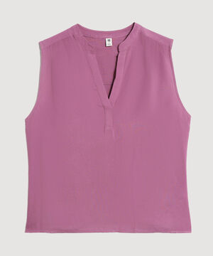 - Blusa manga sisa para mujer con escote en v, textura lisa, silueta fluida, diseño con ligeros prenses en los hombros.
