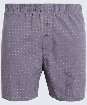 - Bóxer amplio para hombre, elástico en la pretina, bragueta con botones, estampado figuras rombos.