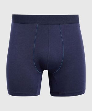 - Bóxer medio para hombre, pretina ancha, textura lisa, silueta ajustada, vena decorativa en un tono que contrasta.
