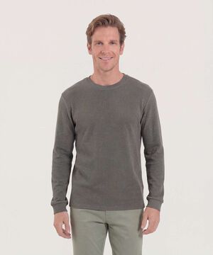 - Buzo texturizado para hombre, cuello redondo, puños ajustados, silueta amplia.