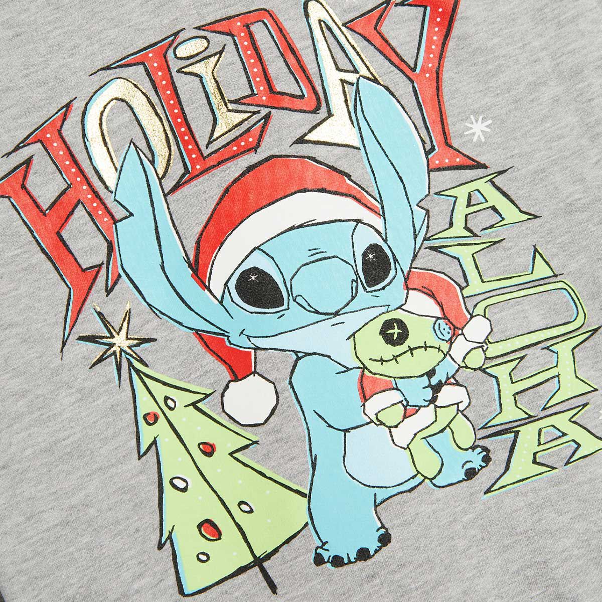 - Buzo para niño, cuello redondo, puños ajustados, textura lisa, silueta regular, estampado de Disney películas de Lilo y Stitch versión Navidad.