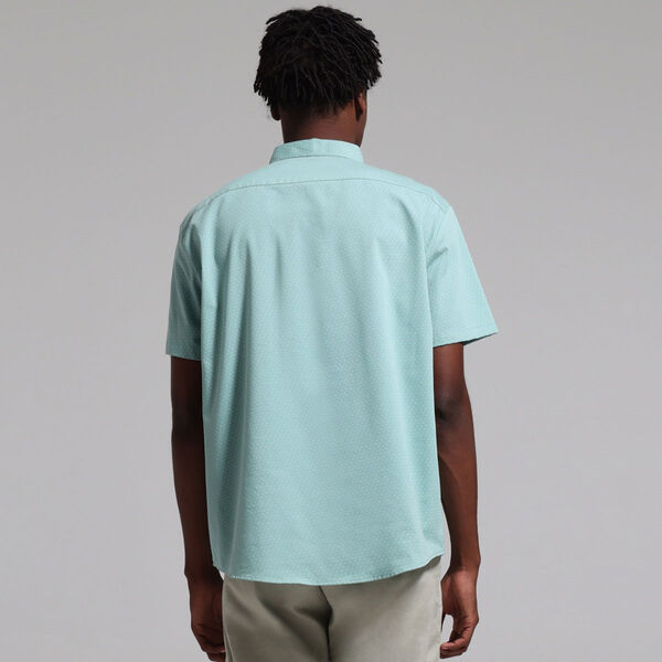 Camisa para hombre en efecto lino, cuello camisero, manga corta, silueta amplia, estampado floral en tonos tierra.