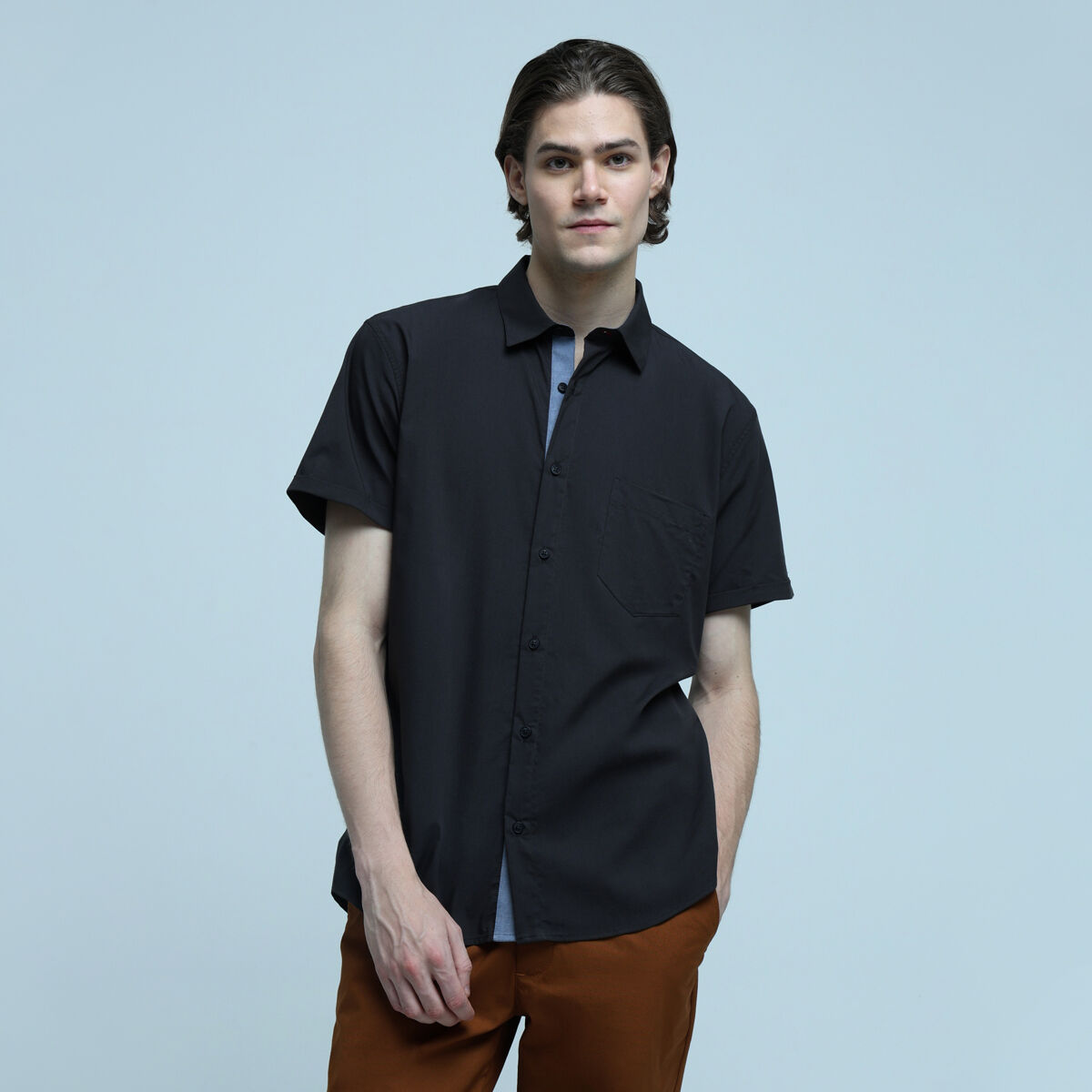 - Camisa manga corta para hombre, cuello camisero, silueta regular, botones en el mismo tono, bolsillo de parche.Diseño versátil que no puede faltar en tu closet, úsala con looks de diferentes estilos.Hecha en algodón, poliéster y elastano.