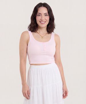 Camiseta Cropped en Rib con Botones