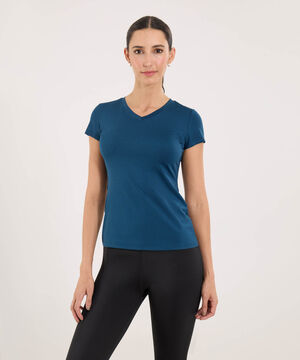 - Camiseta deportiva para mujer en tono azul jaspeado.