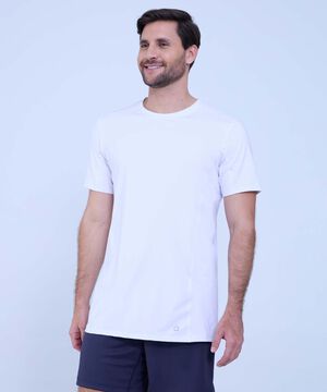- Camiseta deportiva básica para hombre, manga corta, cuello redondo, cortes al frente, silueta regular.