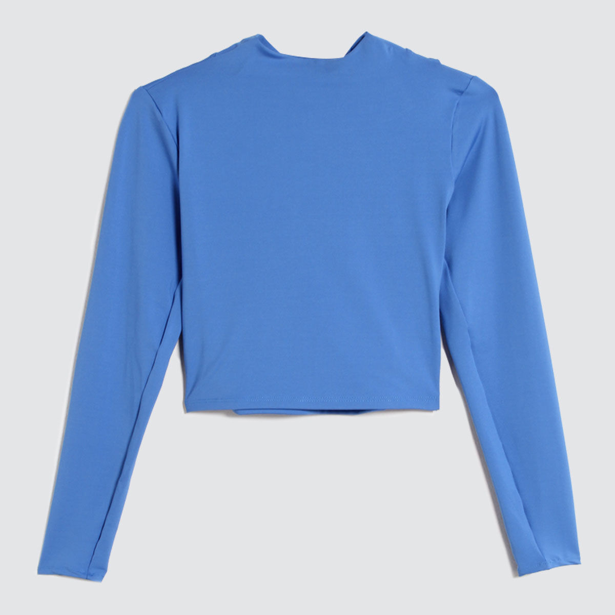 - Camiseta deportiva para mujer, manga larga, cuello alto, cut out en espalda, silueta ajustada. Su tela cuenta con tecnología SPORT SEC acabado que permite absorber y expulsar la humedad, gracias a la estructura de sus fibras que facilitan la rápida evaporación y secado.Hecha en poliéster y elastano.