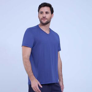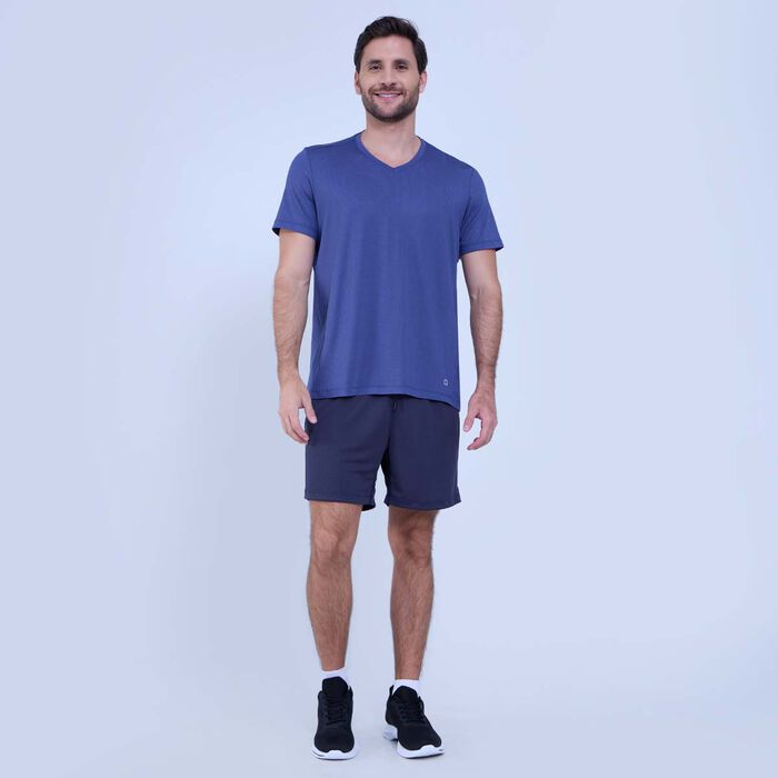 - Camiseta deportiva para hombre, manga corta, cuello en v, silueta regular, diseño texturizado.
