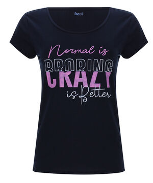 - Camiseta descanso para Mujer manga corta con screen crazy. Composicion: Poliester 91% Elastano 9%.