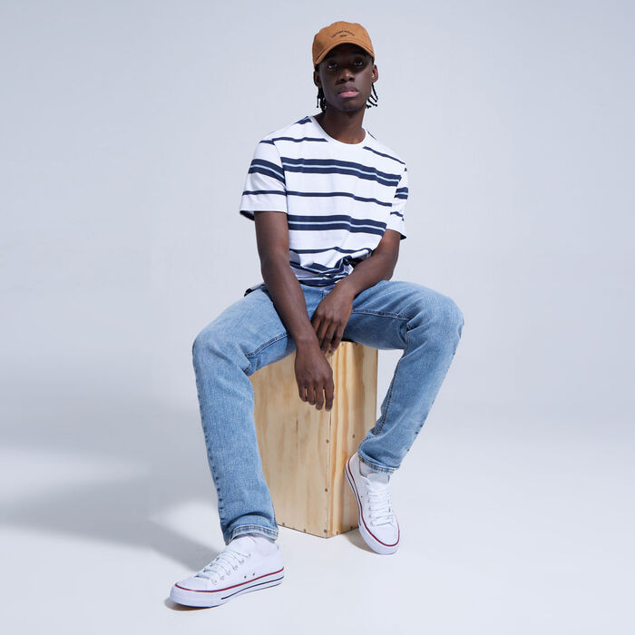 - Camiseta manga corta para hombre, diseño a rayas en distintos tamaños, cuello redondo, silueta amplia, textura lisa, una prenda básica infaltable en tu closet, úsala con jeans de diferentes estilos o bermudas