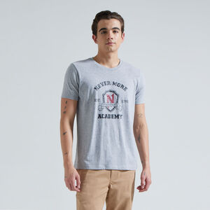 - Camiseta cuello redondo para hombre con estampado tipo colegial, manga corta, silueta semi-ajustada, textura lisa, una prenda infaltable en tu closet, úsala con bermudas, pantalones o jeans de diferentes estilos