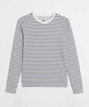 - Camiseta manga larga para mujer, escote cuadrado, silueta ajustada, textura lisa.