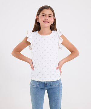 - Camiseta para niña en tono blanco con estampado de pequeños motivos grises.
