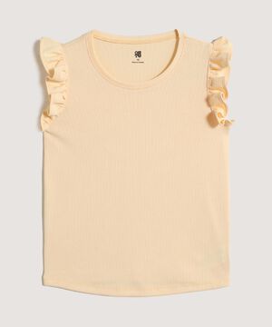 - Camiseta para niña en unicolor con estampado de pequeños motivos grises.