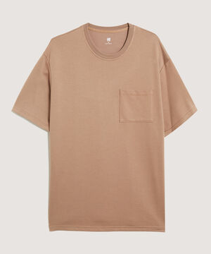 - Camiseta manga corta para hombre, cuello redondo, bolsillo de parche, silueta oversize.