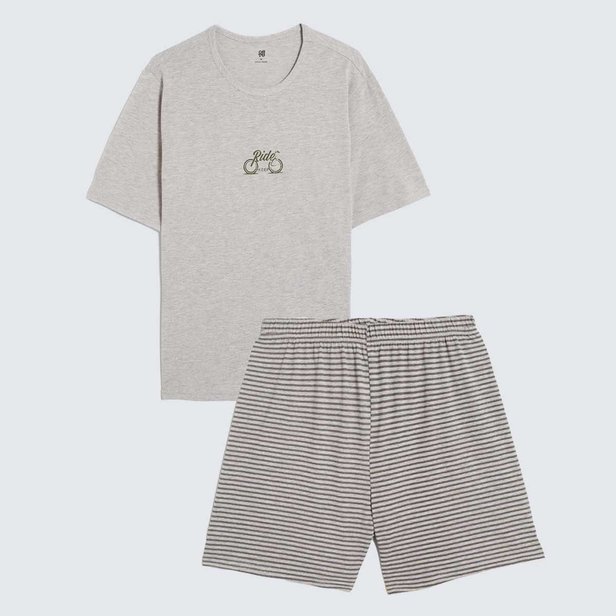 - Conjunto de pijama para hombre, camiseta manga corta estampada, short con elástico en la pretina y estampado de rayas.