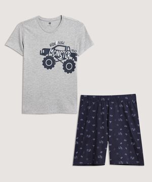 - Camiseta gris con estampado frontal de monster truck.