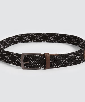 - Correa tejida para hombre, diseño trenzado con líneas en un tono blanco, hebilla metálica en forma rectangular, acabados en efecto cuero.Accesorio en tendencia que puedes usar para darle un toque relajado a tus looks casuales.Hecha en poliéster y poliuretano.