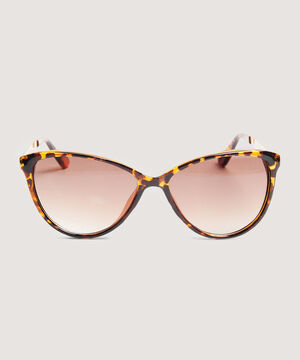 - Gafas de sol par mujer tipo ojos de gato con un diseño de animal print de manchas, lentes en un tono marrón, filtro de protección UV.