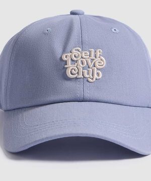 - Gorra beisbolera para mujer, bordado Self Love Club, estructura de tapas, textura acanalada, correa ajustable en la parte trasera.