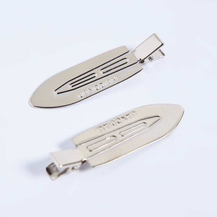 - Hebillas en forma de punta con grabado, gancho en acero.