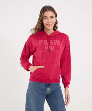 - Hoodie básico para mujer con bordado, silueta semiajustada, textura lisa, capota con cordones para ajustar, bolsillo tipo canguro.