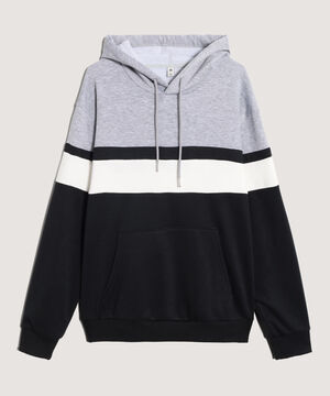 - Hoodie para hombre en bloques en tonos que se contrastan, capota con cordones, puños ajustados, bolsillo tipo canguro, silueta amplia.