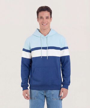 - Hoodie para hombre en bloques en tonos que se contrastan, capota con cordones, puños ajustados, bolsillo tipo canguro, silueta amplia.