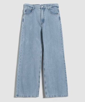 - Jeans wide leg para niña, tono claro, tiro alto, cintura ajustada, textura lisa, altura hasta el tobillo, bolsillos funcionales, silueta amplia.Un diseño en tendencia que no puede faltar en el closet de las niñas, combínalo con blusas o camisetas para un look relajado y cómodo para tus hijas.Hecho 100% en algodón.