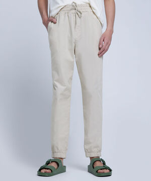 - Jogger para hombre, pretina resortada con cordón para ajustar, textura lisa, bolsillos en diagonal, tiro medio, botas ajustadas con elástico