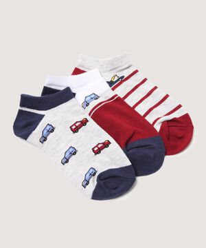 - Incluye diseños divertidos con autos y rayas en tonos gris, vino y azul marino.