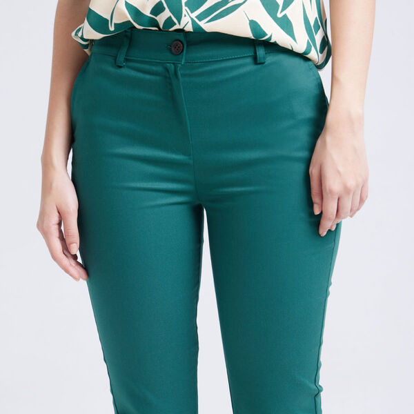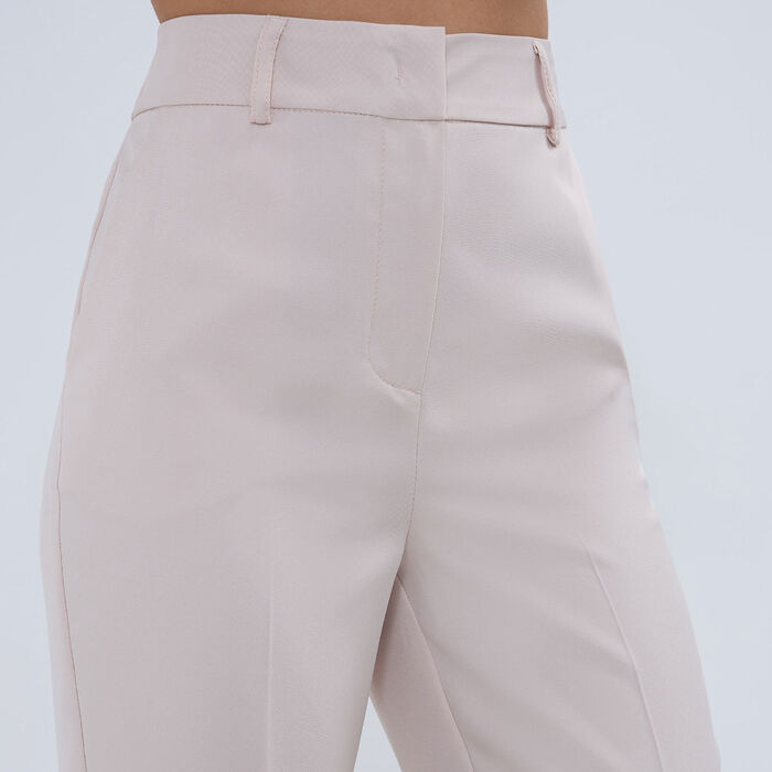 - Pantalón casual para mujer, tiro alto, bolsillos en diagonal, silueta semiajustada, pliegues al frente, altura hasta el tobillo, bota recta.