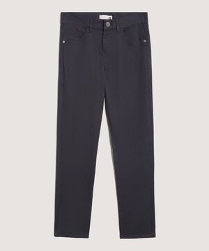 - Pantalón básico 5 bolsillos para hombre, tiro alto, cintura semi-ajustada, bota recta, altura hasta el tobillo, textura lisa.