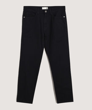 - Pantalón básico 5 bolsillos para hombre, tiro alto, cintura semi-ajustada, bota recta, altura hasta el tobillo, textura lisa.