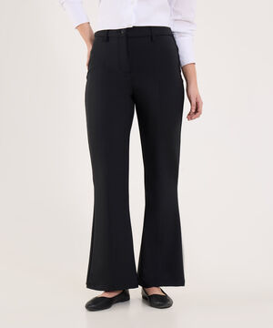 - Pernera ajustada en la parte superior y amplia desde la rodilla hasta el ruedo.