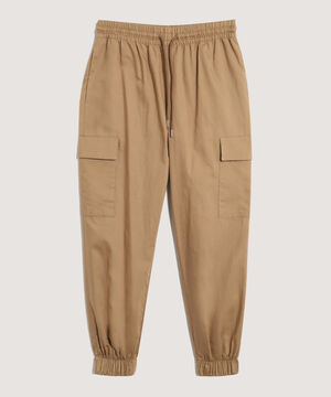 - Jogger para mujer con bolsillos cargo en los costados, tiro alto, pretina resortada con cordón para ajustar, silueta amplia, altura hasta el tobillo, elástico en las botas.