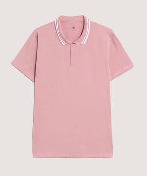 - Cuello tipo polo con tejido en contraste.
