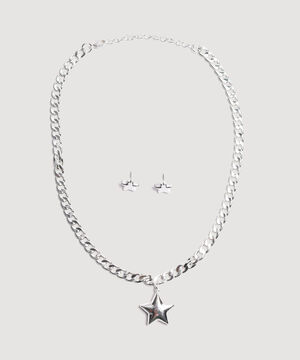 - Incluye collar con cadena gruesa y dije en forma de estrella.