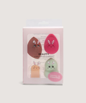 - Set de cuatro esponjas faciales con diseños únicos en forma y color, decoradas con caritas de conejo para darle un toque divertido a tu rutina.