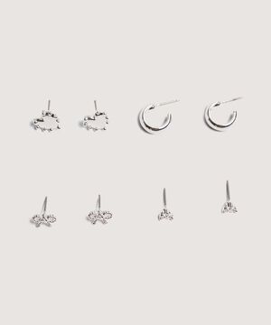 - Set x 4 de aretes para mujer, compuesto por diferentes diseños con brillos en vidrio que te permitirán realizar distintas combinaciones con tus looks casuales.