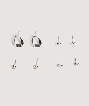 - Set x 4 de aretes para mujer, compuesto por diferentes diseños en tamaños pequeños con brillos, úsalos para resaltar tus looks casuales.