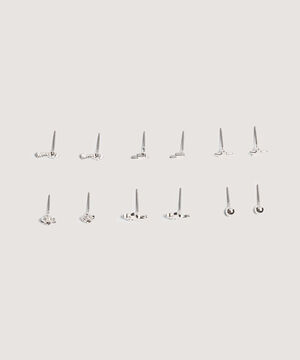 - Set x 6 de aretes para mujer en un tono plateado, compuesto por diseños variados con brillos, úsalos para resaltar tus looks casuales.