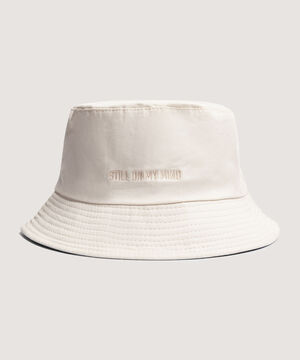- Sombrero bucket para mujer, textura lisa, costuras en el mismo tono, bordado de Still On My Mind en el mismo tono.