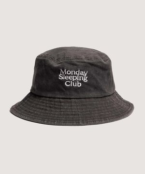 - Sombrero bucket para mujer, desgastes de lavado, textura lisa, bordado de Monday Sleeping Club en un tono que contrasta.