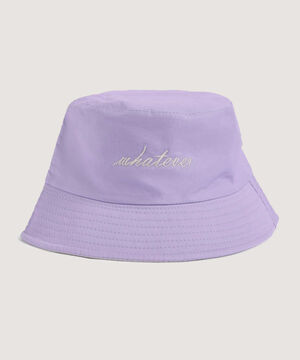 - Sombrero bucket doble faz para mujer, bordado whatever, costuras a tono, textura lisa.