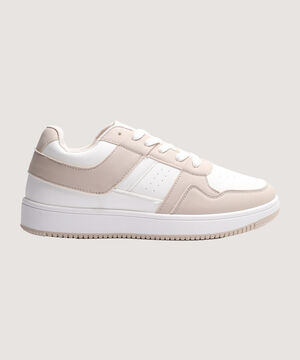 - Tenis para mujer en tonos beige y blanco.