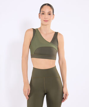 - Top atlético para mujer en tono verde oliva.